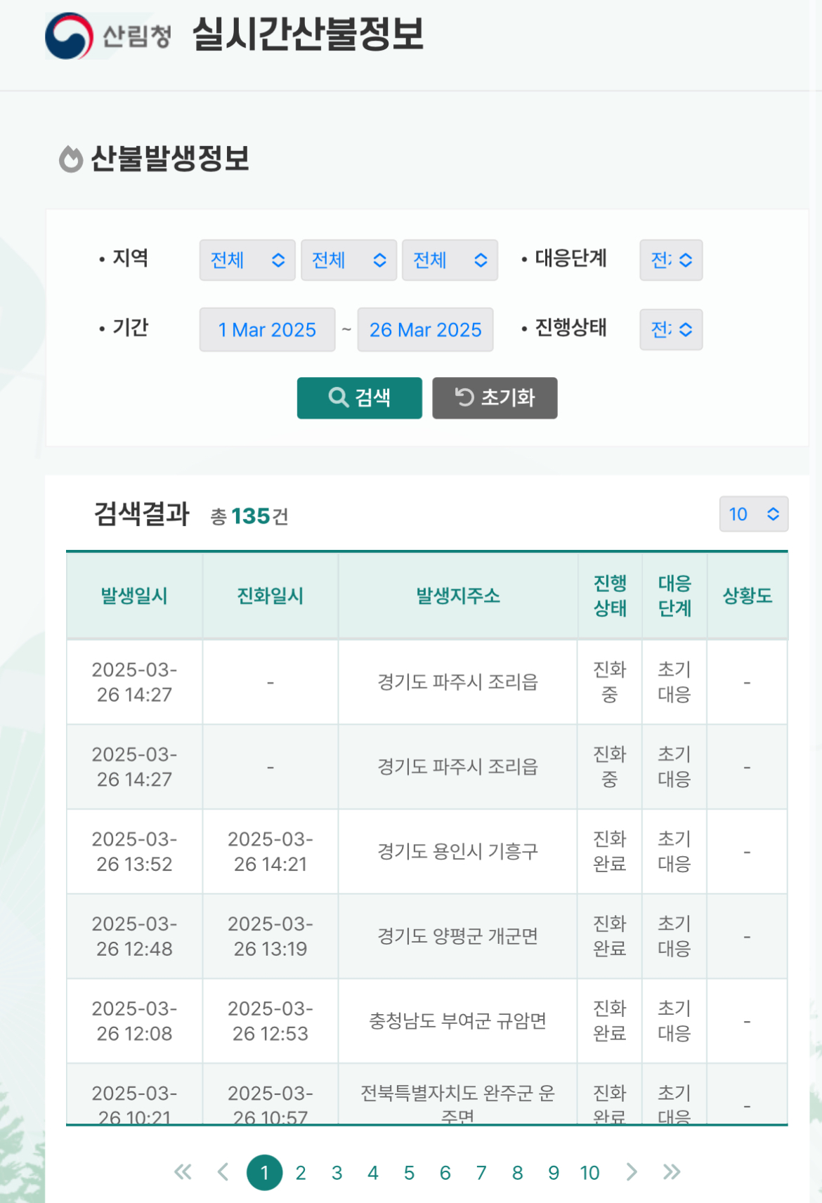 이곳에서는 현재 발생 중인 산불의 진행 상황과 대응 현황을 확인할 수 있습니다.