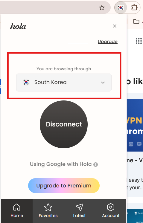 5. 확장 프로그램 실행: 설치가 완료되면 브라우저 우측 상단의 확장 프로그램 아이콘을 클릭하여 VPN을 실행합니다.